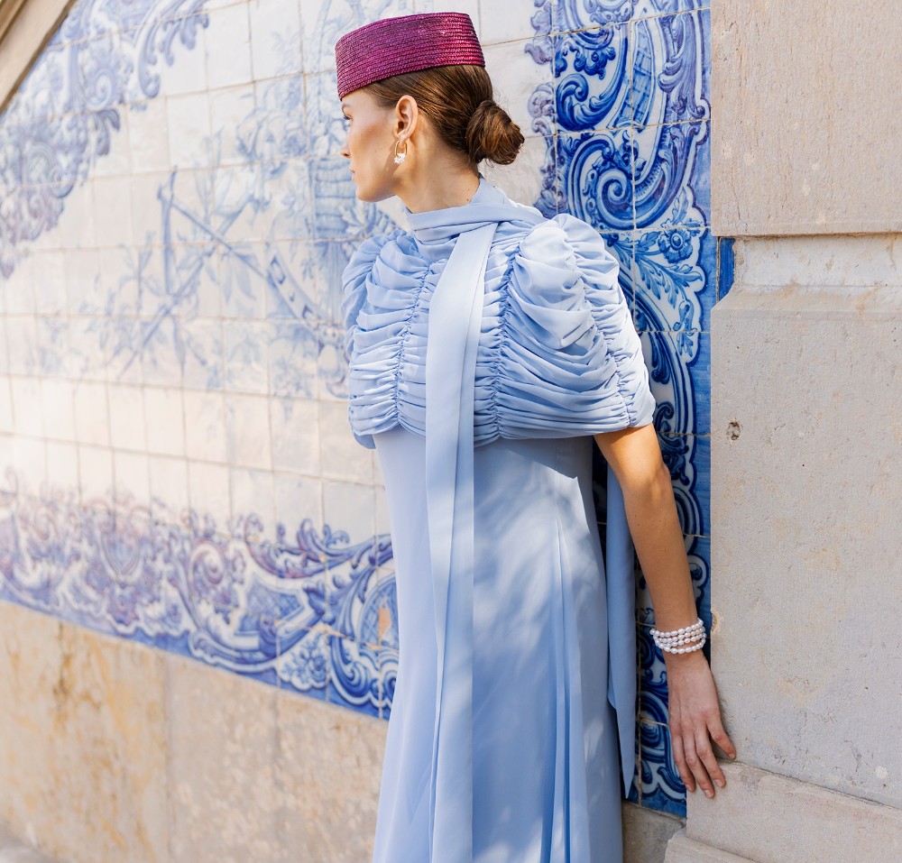 The crown is approximately 7-8 cm high. Size 57. Includes two loops on the sides for attaching with hairpins or a headband (not included).