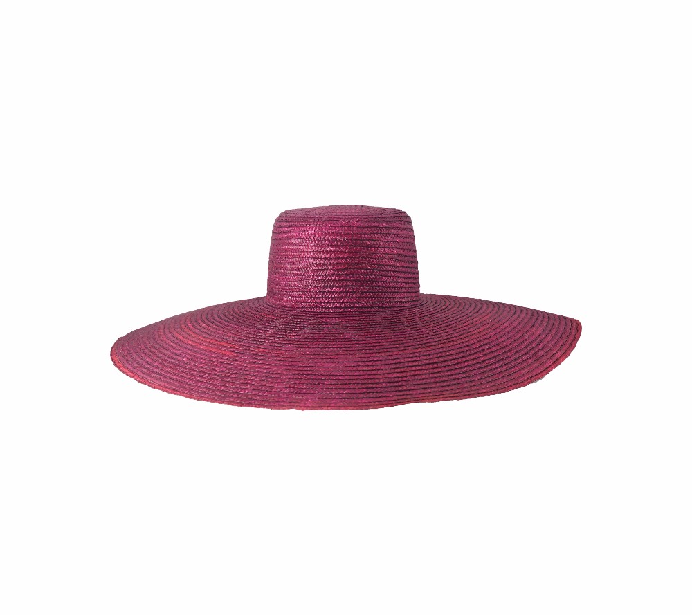 Pamela de paja trenzada confeccionada en España, con copa redonda de 10 cm de altura y diámetro de 47 cm. aprox. Está aprestada, el ala tiene una ligera inclinación hacia abajo, y mide 14-15 cm. aprox. Disponible en talla S (55-56 aprox.), talla M (57 aprox.) y talla L (58 aprox.)