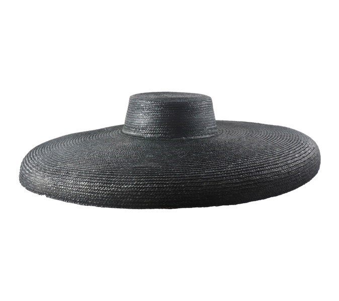 Pamela de paja trenzada 9-10 mm, confeccionada en España. Tiene una altura de copa de 6 cm aprox. y el ala de 17 cm aprox., más 4 cm. aprox. de caída hacia abajo. El diámetro total es de 52 cm aprox. Necesita sujeción (NO incluida).
