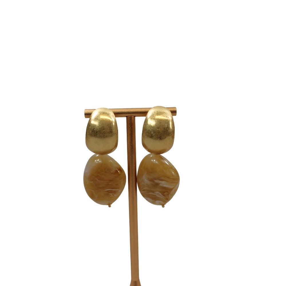 Par de pendientes formado por una pieza dorada mate y otra de resina de color. Longitud: 7 cm. aprox.