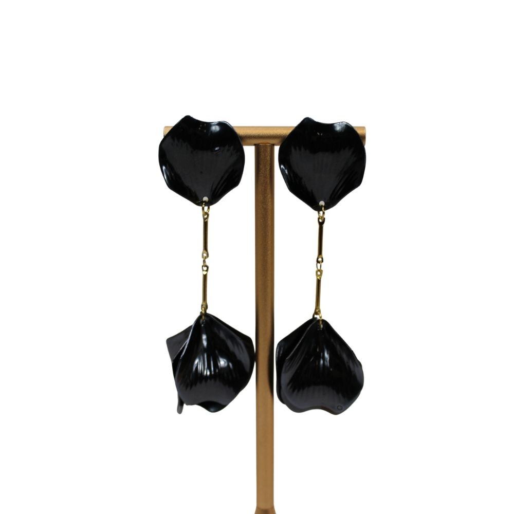 Par de pendientes largos con pétalos de resina.