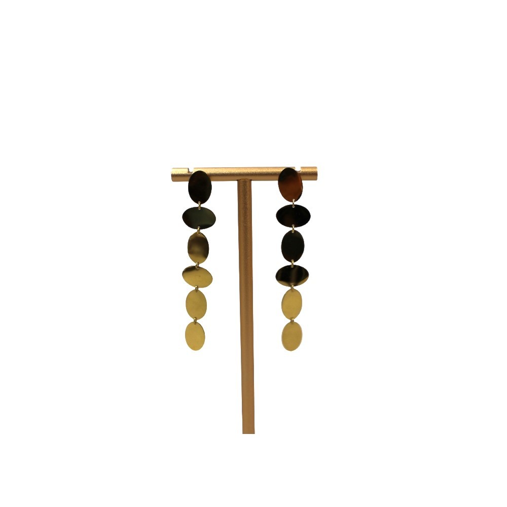 Par de pendientes largos formados por pequeños óvalos. Composición 100% acero. Longitud: 8 cm. aprox.