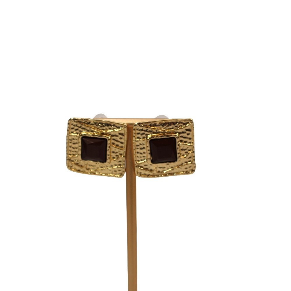 Par de pendientes cuadrados dorados con la parte interior de resina marrón. Medida: 3,5x3,5 cm. aprox.